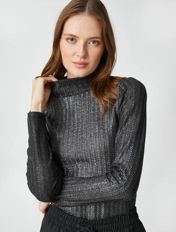 Koton X Şahika Ercümen - Yarım Balıkçı Yaka Parlak Uzun Kollu Tişört