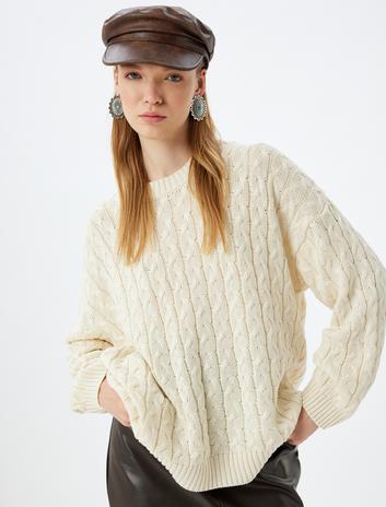 Bisiklet Yaka Saç Örgü Dokulu Rahat Kalıp Triko Kazak