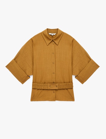 Viskon Karışımlı Dokulu Kısa Kollu Kemerli Oversize Gömlek Sepete Ekle