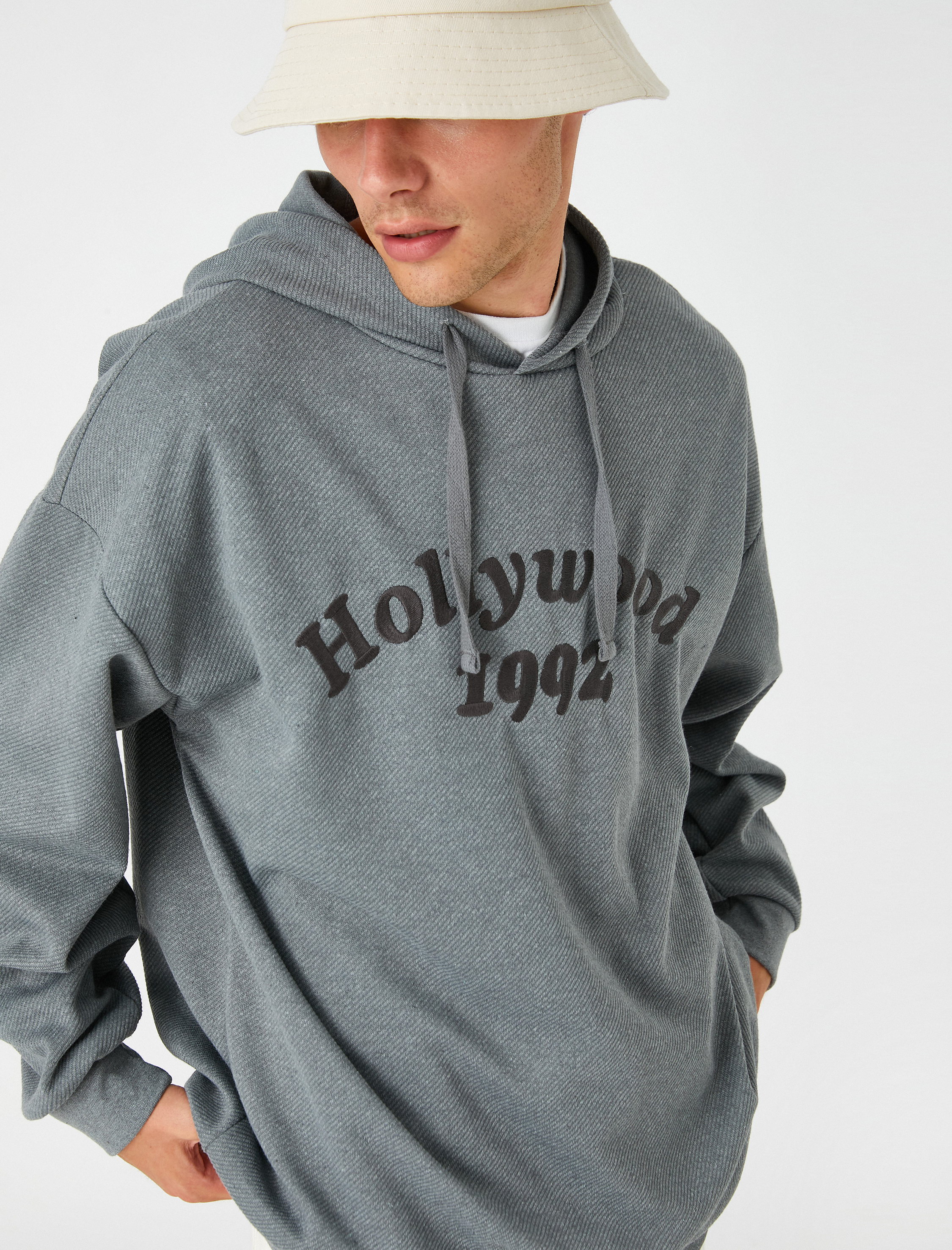 Oversize Kapşonlu Sweatshirt Yazı Baskılı