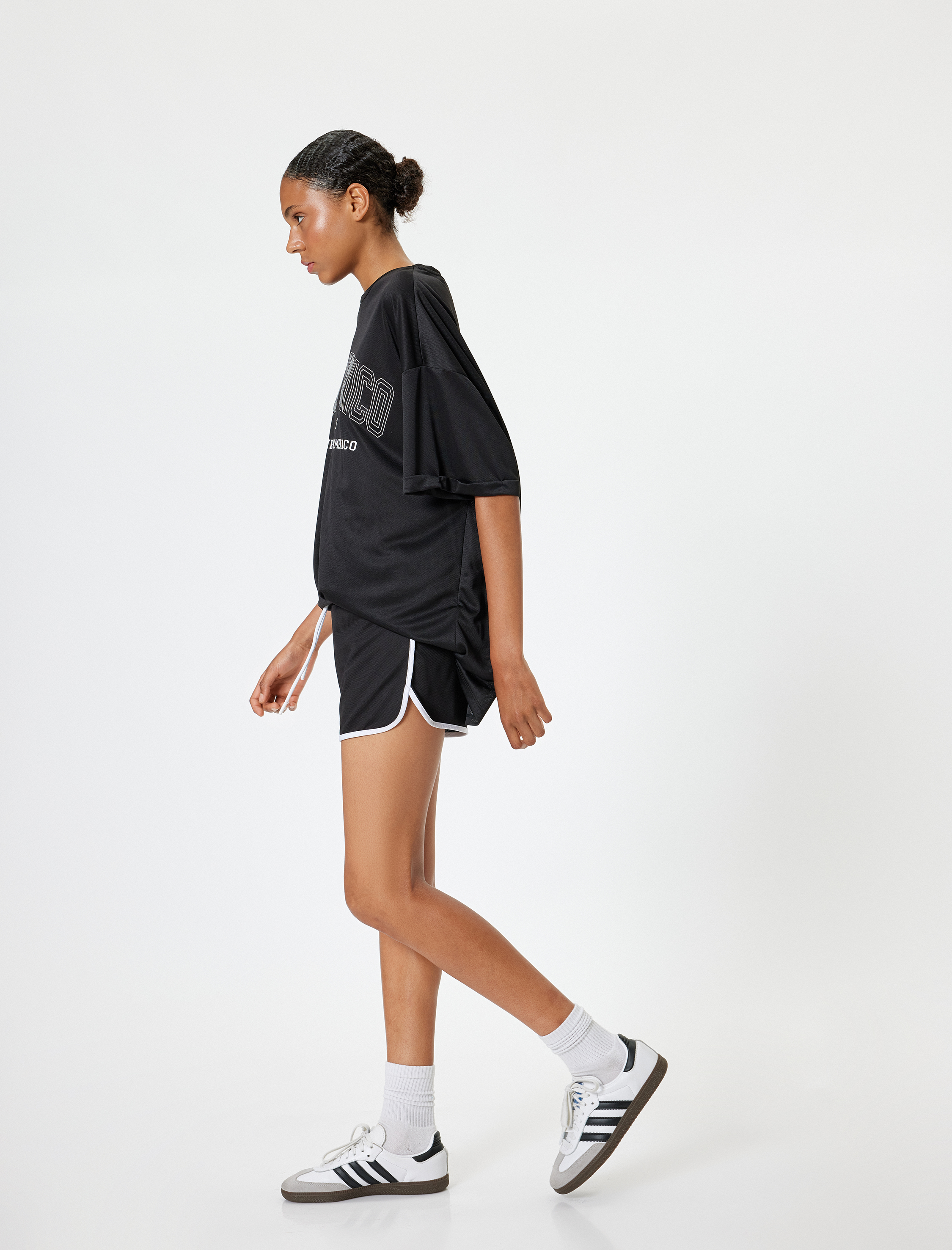 Oversize Spor Tişört Bisiklet Yaka Slogan Baskılı Kısa Kollu İnterlok