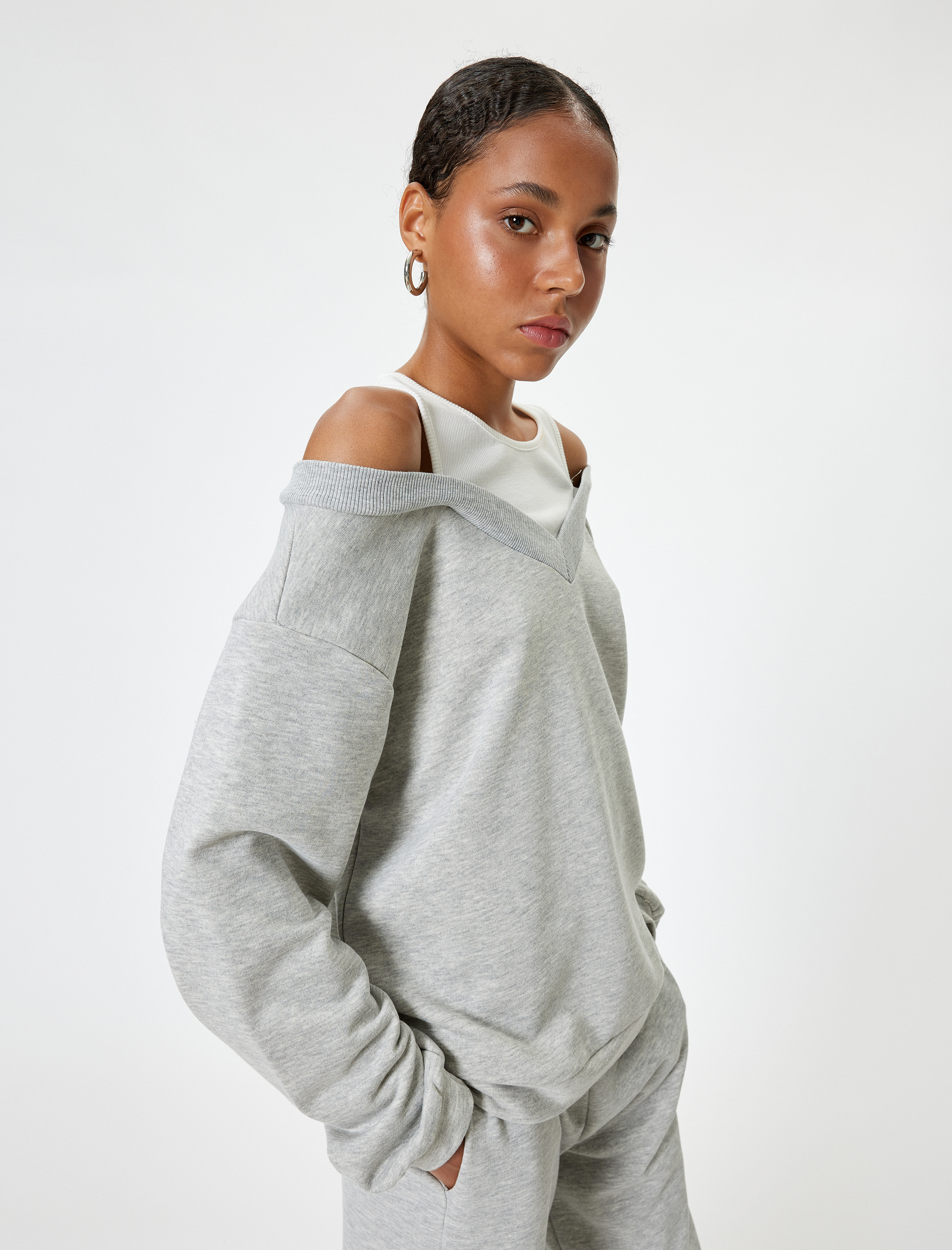 Oversize Sweatshirt İçi Atletli Uzun Kollu Şardonlu