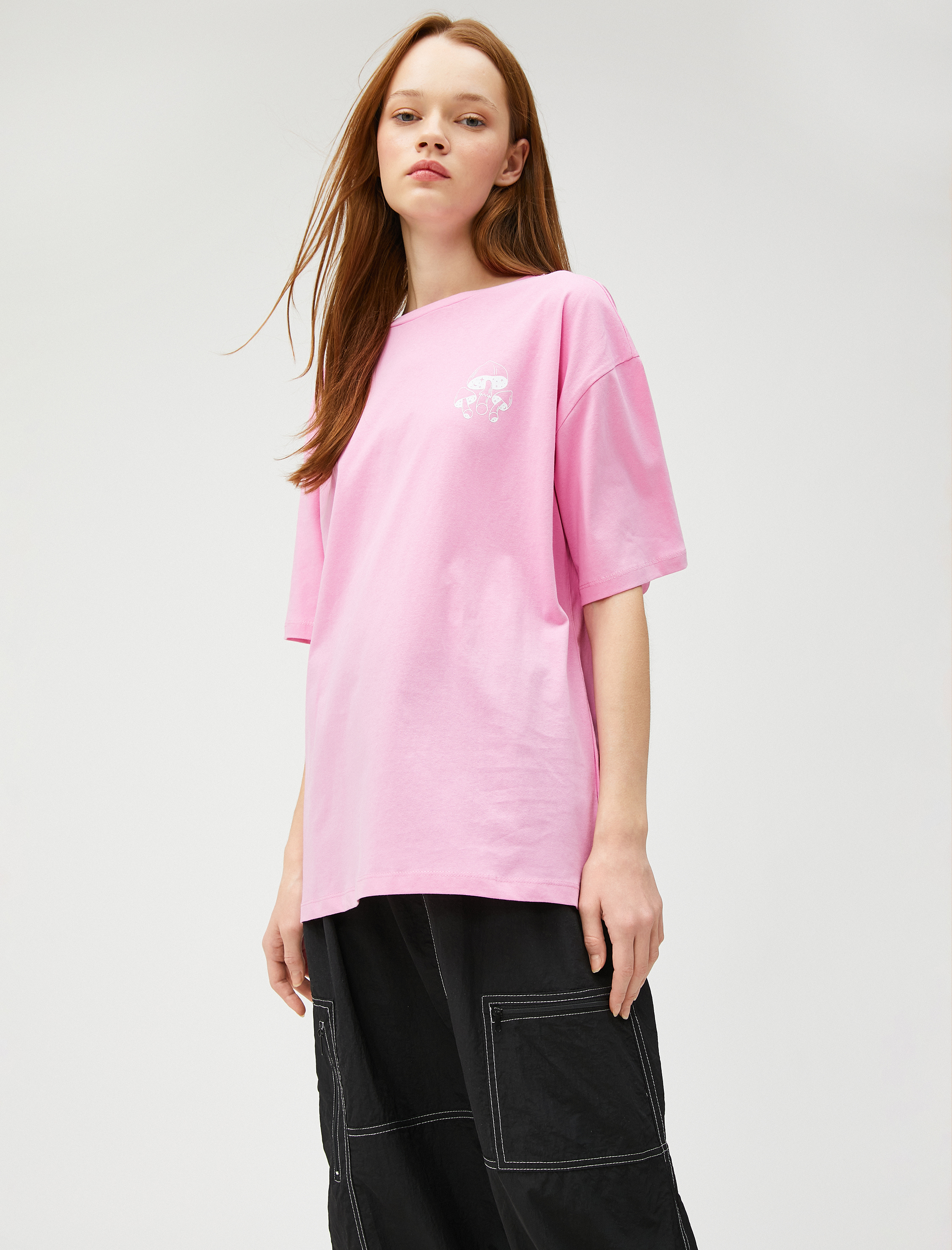 Oversize Tişört Baskılı Bisiklet Yaka Kısa Kollu Pamuklu
