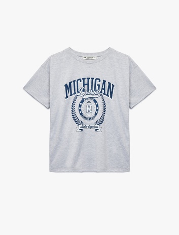 Kısa Kollu Kolej Baskılı Bisiklet Yaka Oversize Tişört Sepete Ekle