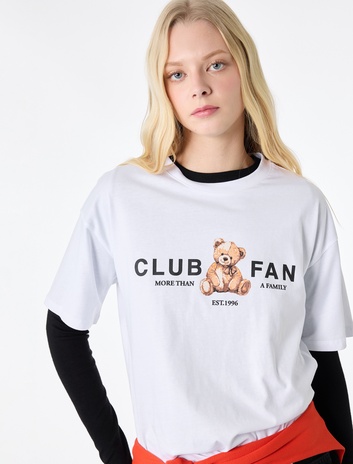 Kısa Kollu Bisiklet Yaka Pamuklu Ayıcık Baskılı Oversize Tişört Sepete Ekle