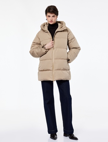 Fermuarlı Uzun Kollu Su İtici Kapüşonlu Oversize Şişme Mont Sepete Ekle