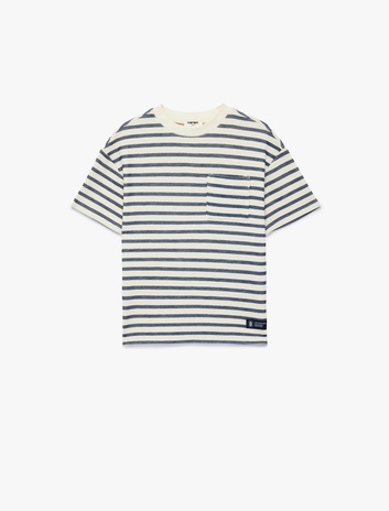 Erkek Çocuk Pamuklu Çizgili Bisiklet Yaka Kısa Kollu Oversize Tişört