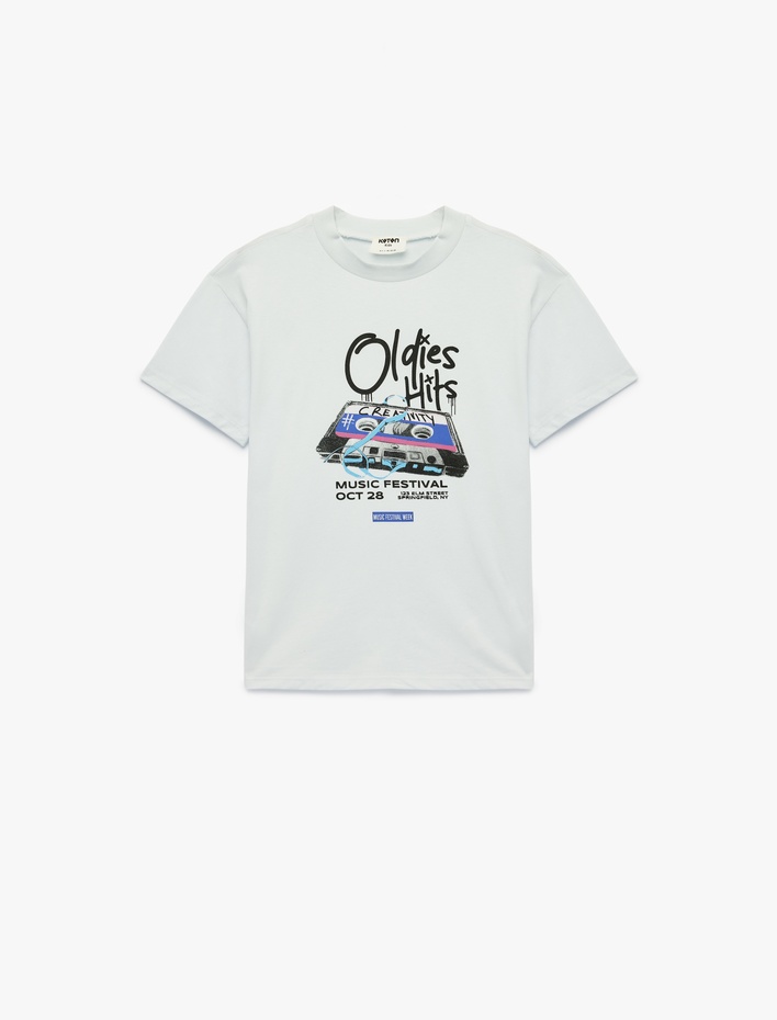 Pamuklu Bisiklet Yaka Baskılı Kısa Kollu Oversize Tişört Sepete Ekle