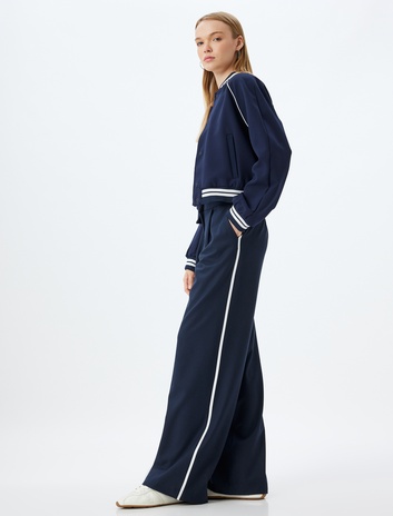 Oversize Pantolon Bol Paça Düğmeli Beli Lastikli Şerit Detaylı Cepli