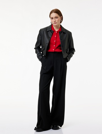 Düz Geniş Paça Dokulu Palazzo Pantolon
