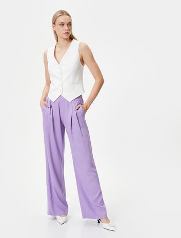 Palazzo Pantolon Yüksek Bel Cepli Pile Detaylı Rahat Kesim