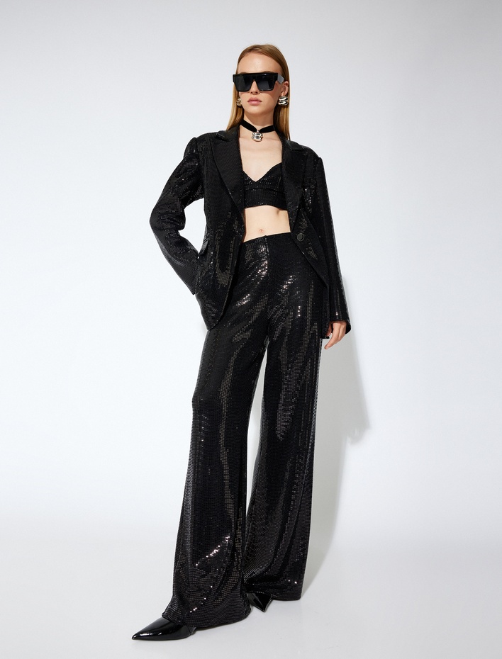 Koton X Sibil Çetinkaya - Pullu Payetli Palazzo Pantolon