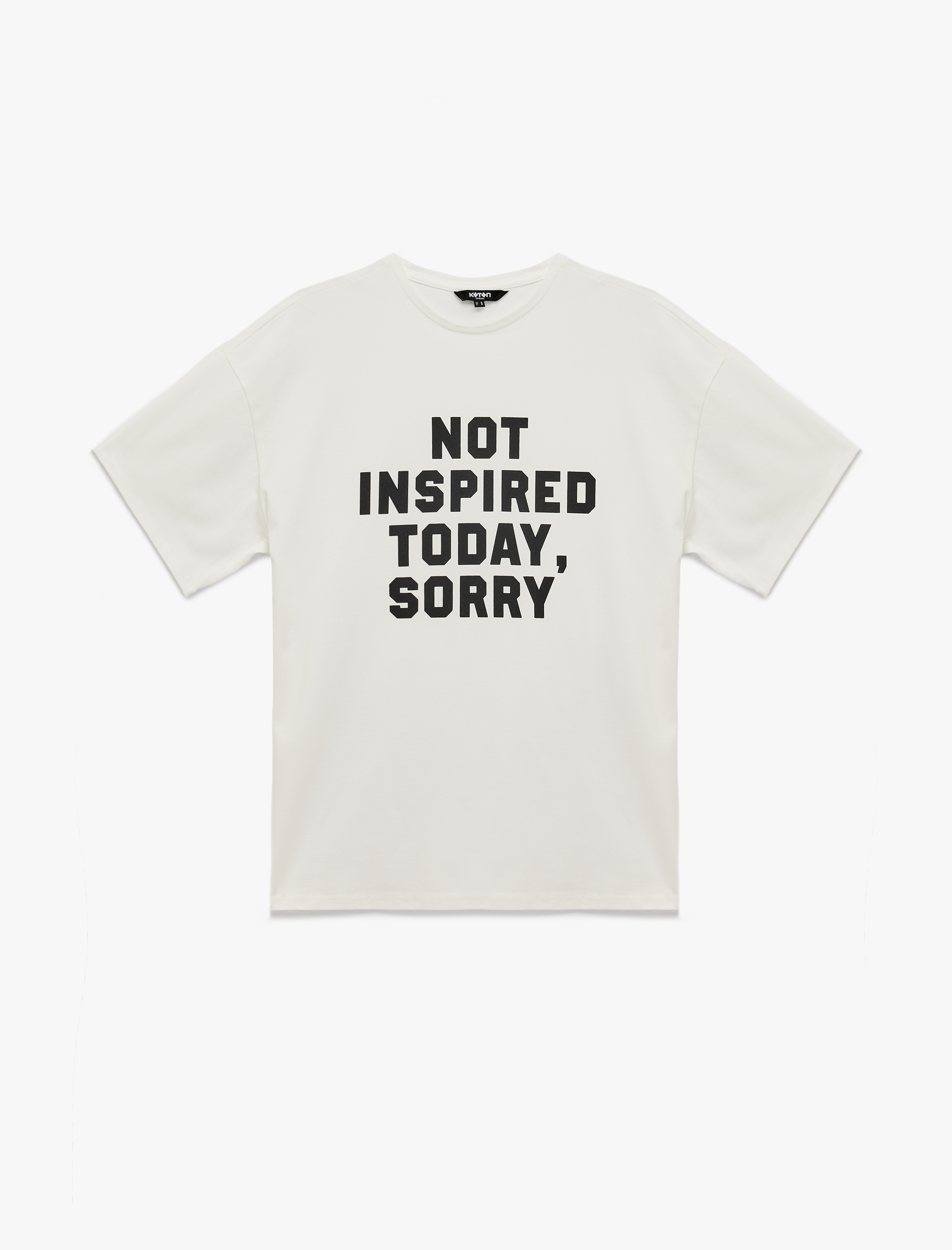 Pamuklu Baskılı Yarım Kollu Bisiklet Yaka Oversize Spor Tişört