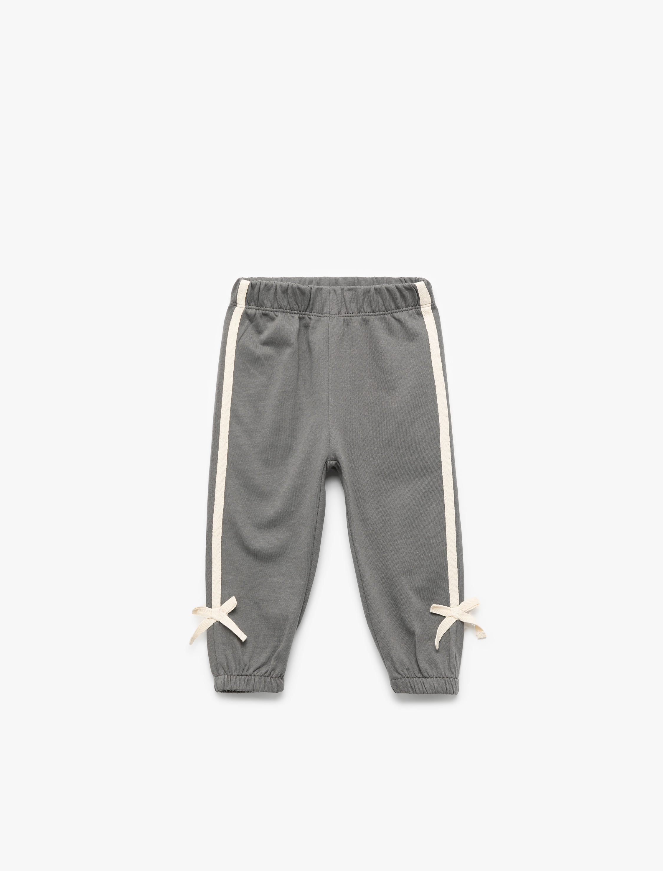 Kız Bebek Pamuklu Beli Lastikli Fiyonk Detaylı Şardonlu Jogger Eşofman Altı