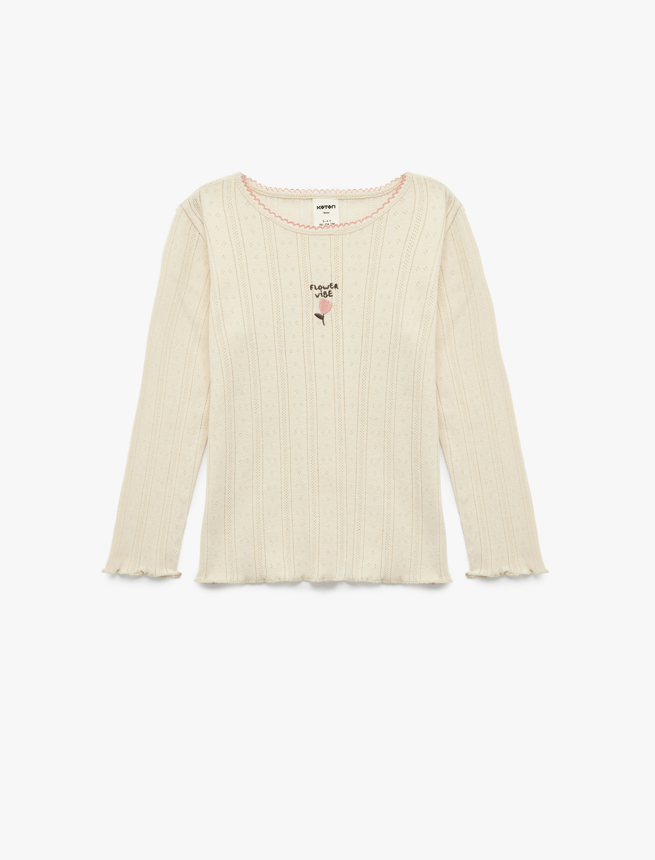 <p><p>Uzun kollu tişört, minikler için hem şıklık hem de konfor sunuyor. Bisiklet yaka tasarımı pamuklu dokusuyla gün boyu rahatlık sunuyor. Sade tasarımıyla her çeşit alt giyim ürünüyle kolayca uyum sağlıyor,&nbsp;</p></p> <strong>Ürün Özellikleri</strong> <p><p>Kol Tipi: Uzun Kol<br>Yaka Tipi: Bisiklet Yaka<br>Detay: Nakışlı<br>Kumaş: %100 Pamuk<br>Kullanım Alanı: Günlük Giyim</p></p> <p>Koton kız bebek koleksiyonu, miniklerin dünyasına renk katıyor! Koton’un sevimli ve konforlu tasarımlarını keşfedin!</p> <p>Ürünlerimiz kimyasallara karşı test edilerek, tüm güvenlik kurallarına uygun olarak üretilir. Ürünlerimizde sağlığa zararlı boyalar ve ağır metaller, tehlikeli yutulabilecek küçük ve keskin parçalar, kordon ve bağcıklar bulunmamaktadır.</p>