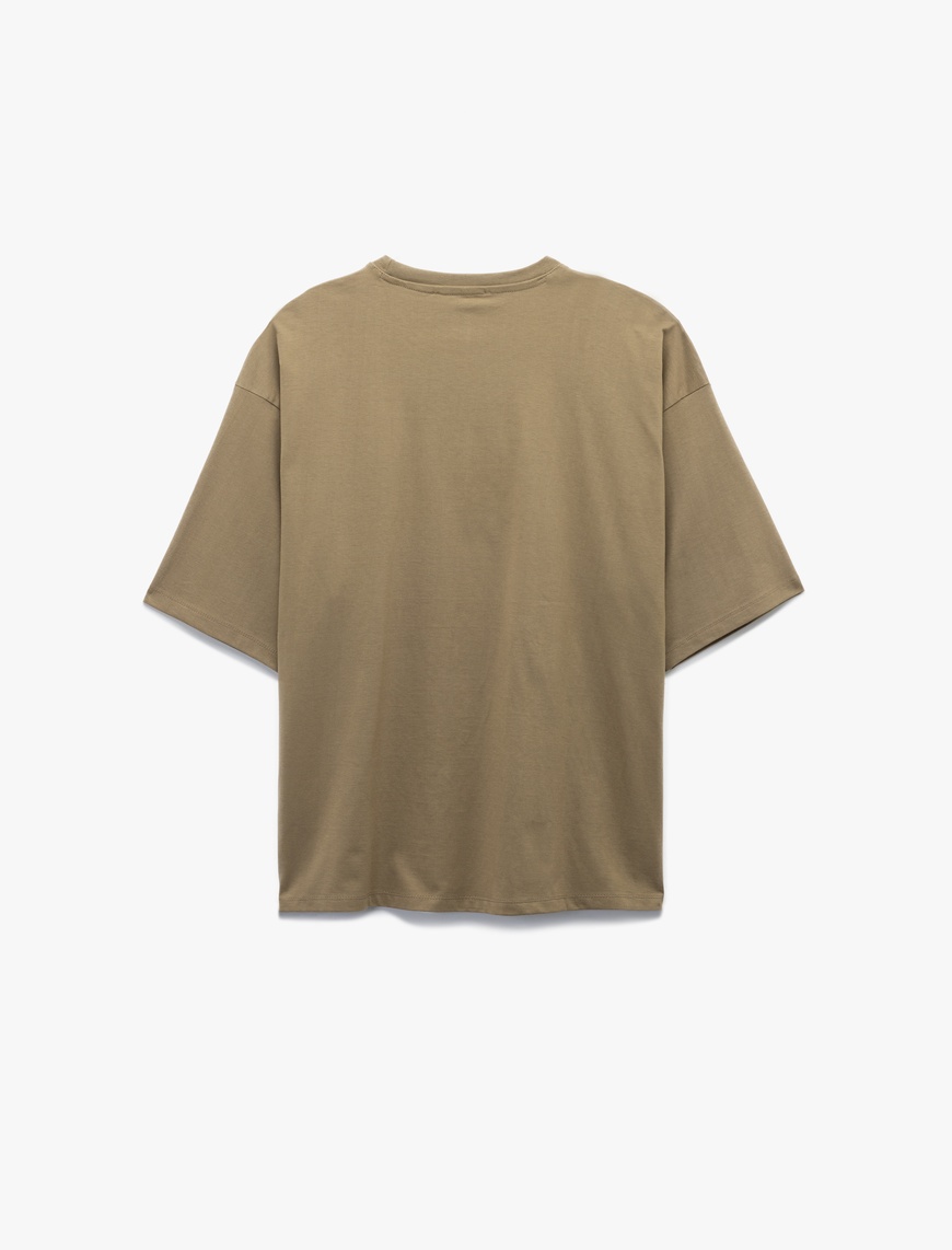Pamuklu Bisiklet Yaka Tok Kumaş Slogan İşlemeli Kısa Kollu Oversize Tişört