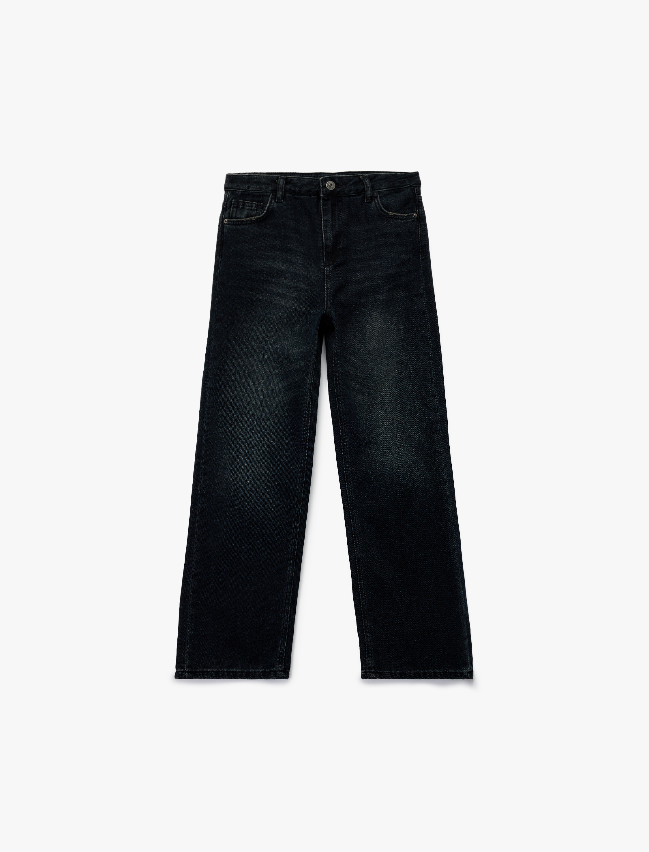 Kız Çocuk Pamuklu Cep Detaylı Bol Paça Denim Pantolon