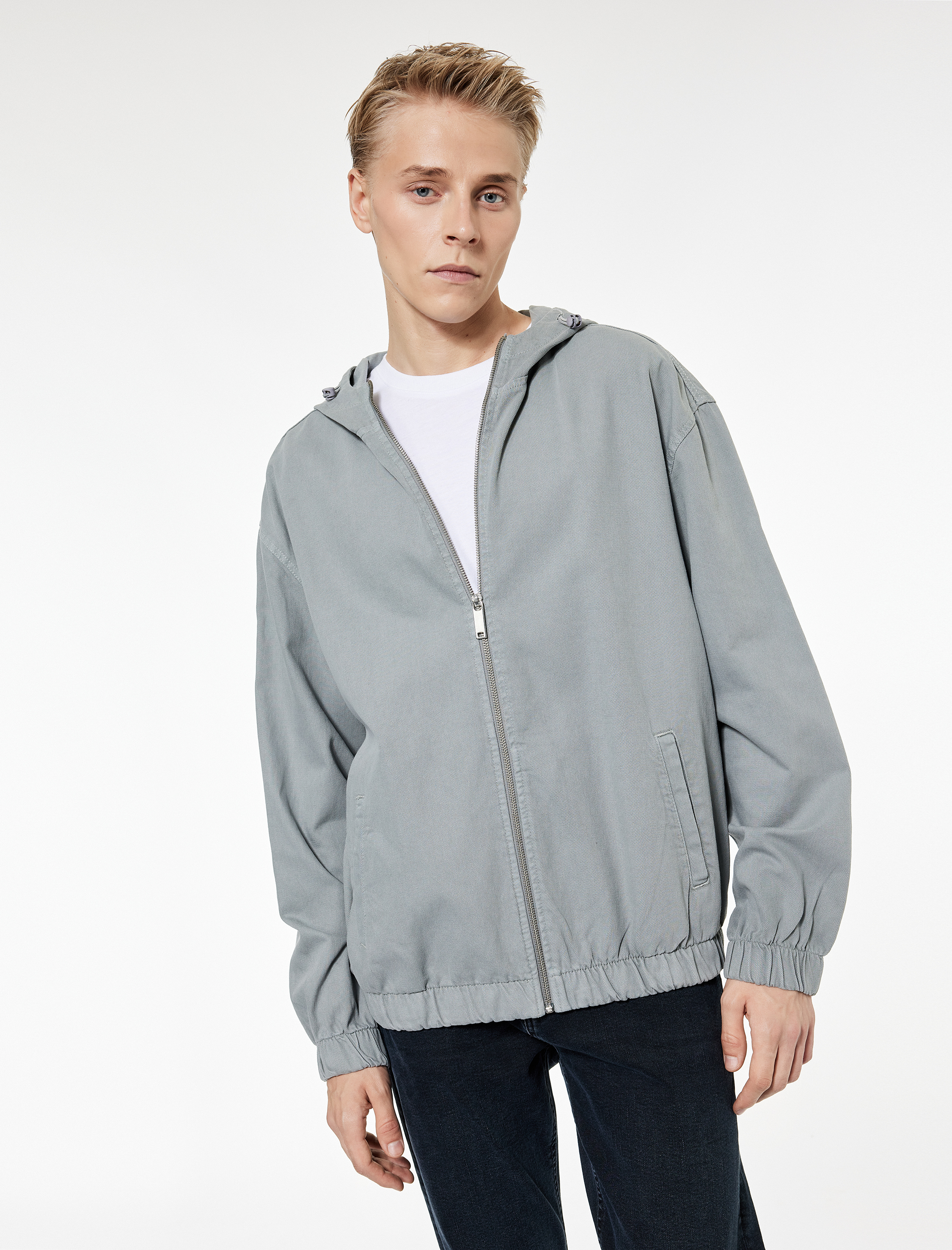 Pamuklu Cepli Uzun Kollu Fermuarlı Oversize Kapşonlu Jean Ceket