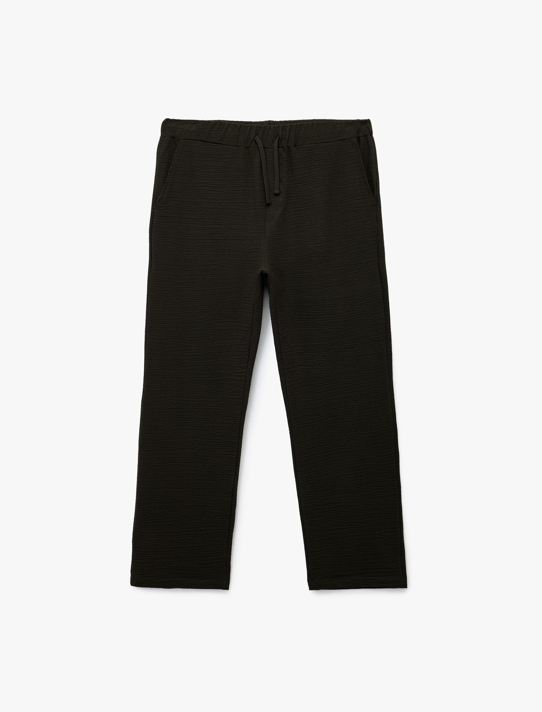 Pamuklu Dokulu Cep Detaylı Beli Bağcıklı Eşofman Altı