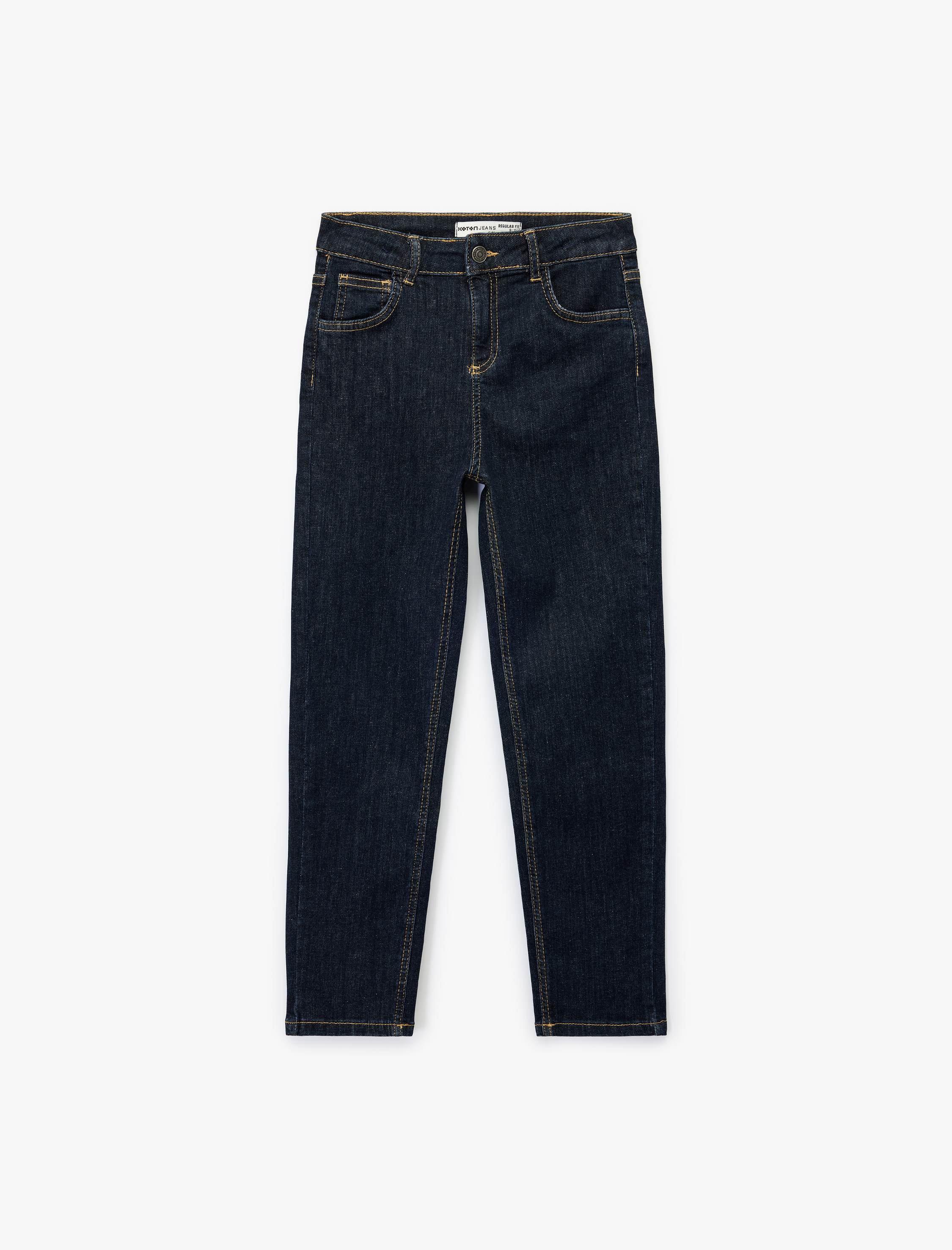 Erkek Çocuk Pamuklu Düğmeli Beli Ayarlanabilir Lastikli Straight Fit Denim Pantolon