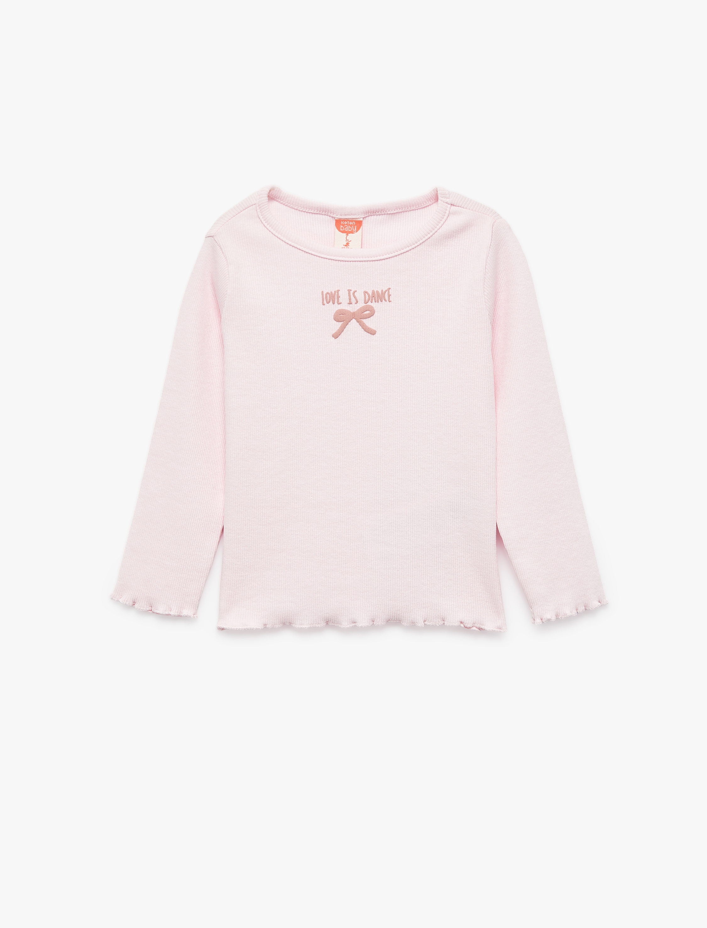 Kız Bebek Pamuklu Kaşkorse Bisiklet Yaka Fiyonk İşlemeli Uzun Kollu Tişört
