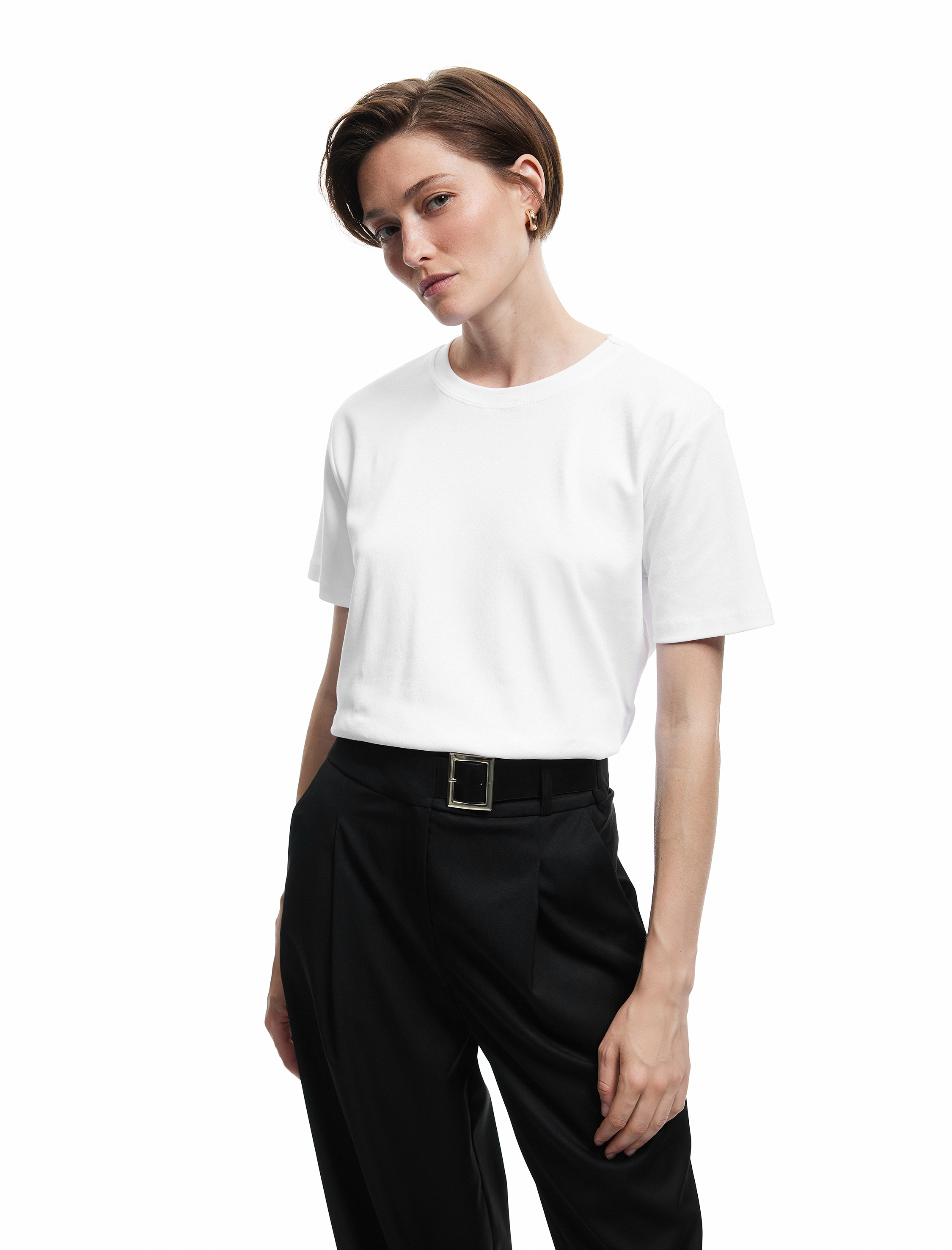 Pamuklu Kısa Kollu Bisiklet Yaka Basic Tişört
