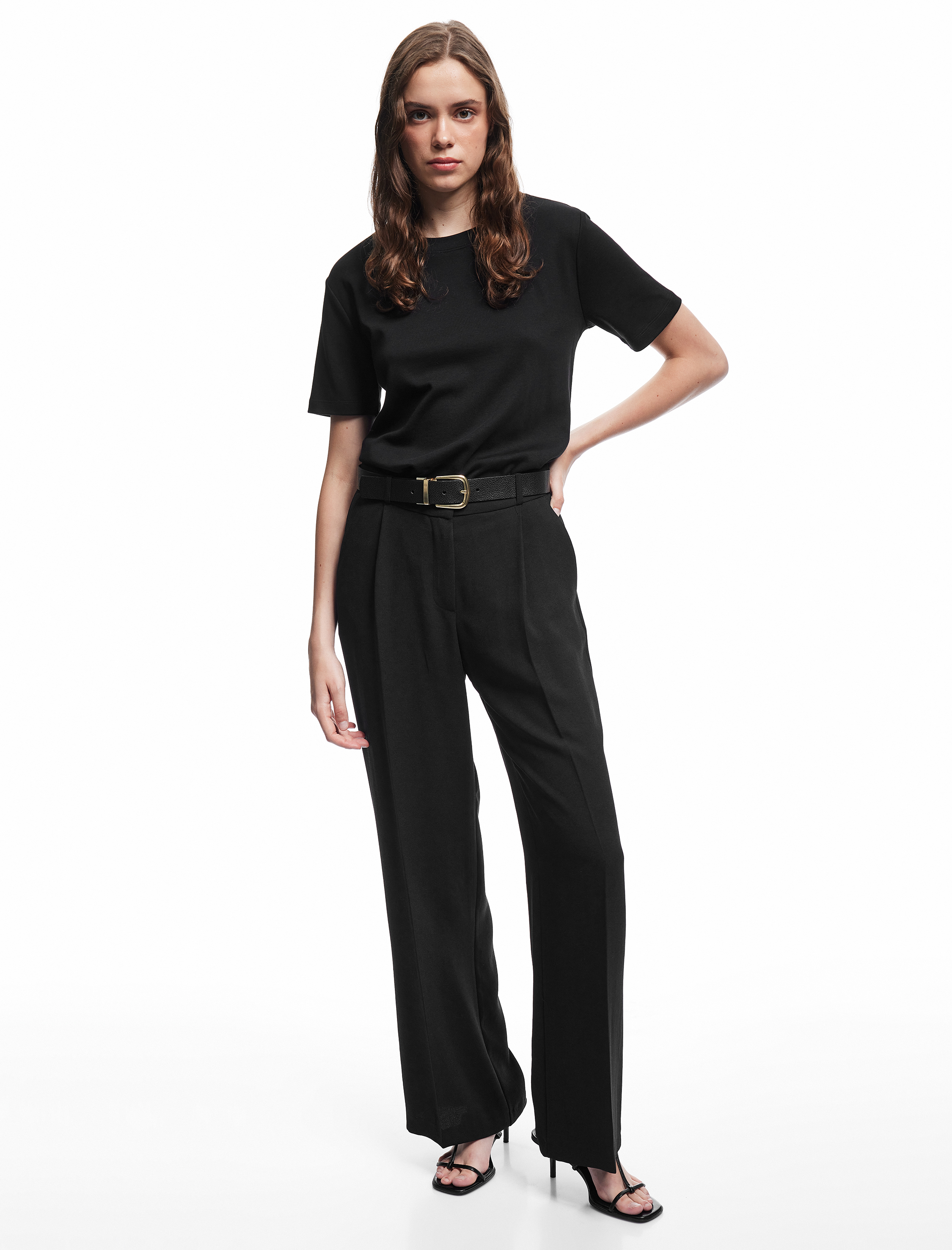 Pamuklu Kısa Kollu Bisiklet Yaka Basic Tişört