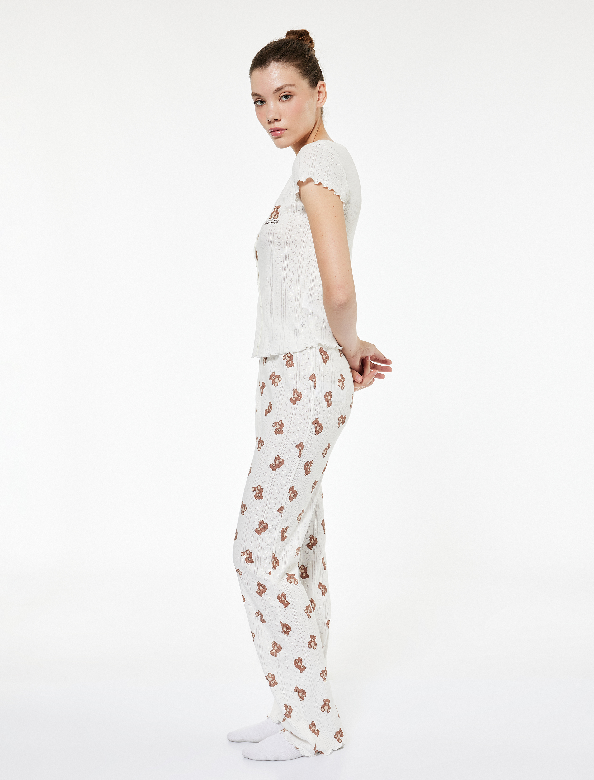 Pamuklu Kısa Kollu Düğmeli Pijama Takımı