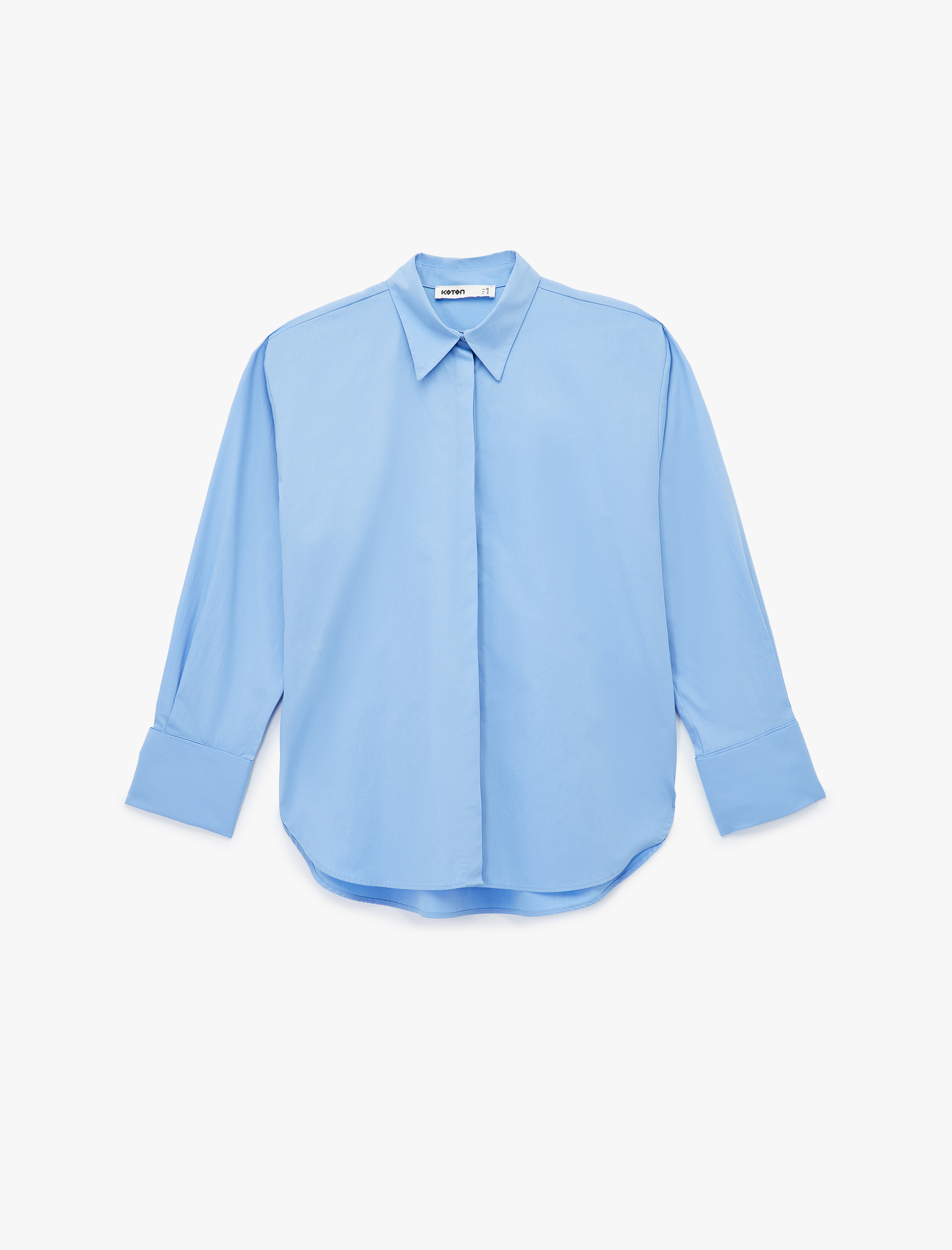 Pamuklu Kol Düğmesi Detaylı Uzun Kollu Oversize Gömlek   Pamuklu Kol Düğmesi Detaylı Uzun Kollu Oversize Gömlek   Pamuklu Kol Düğmesi Detaylı Uzun Kollu Oversize Gömlek