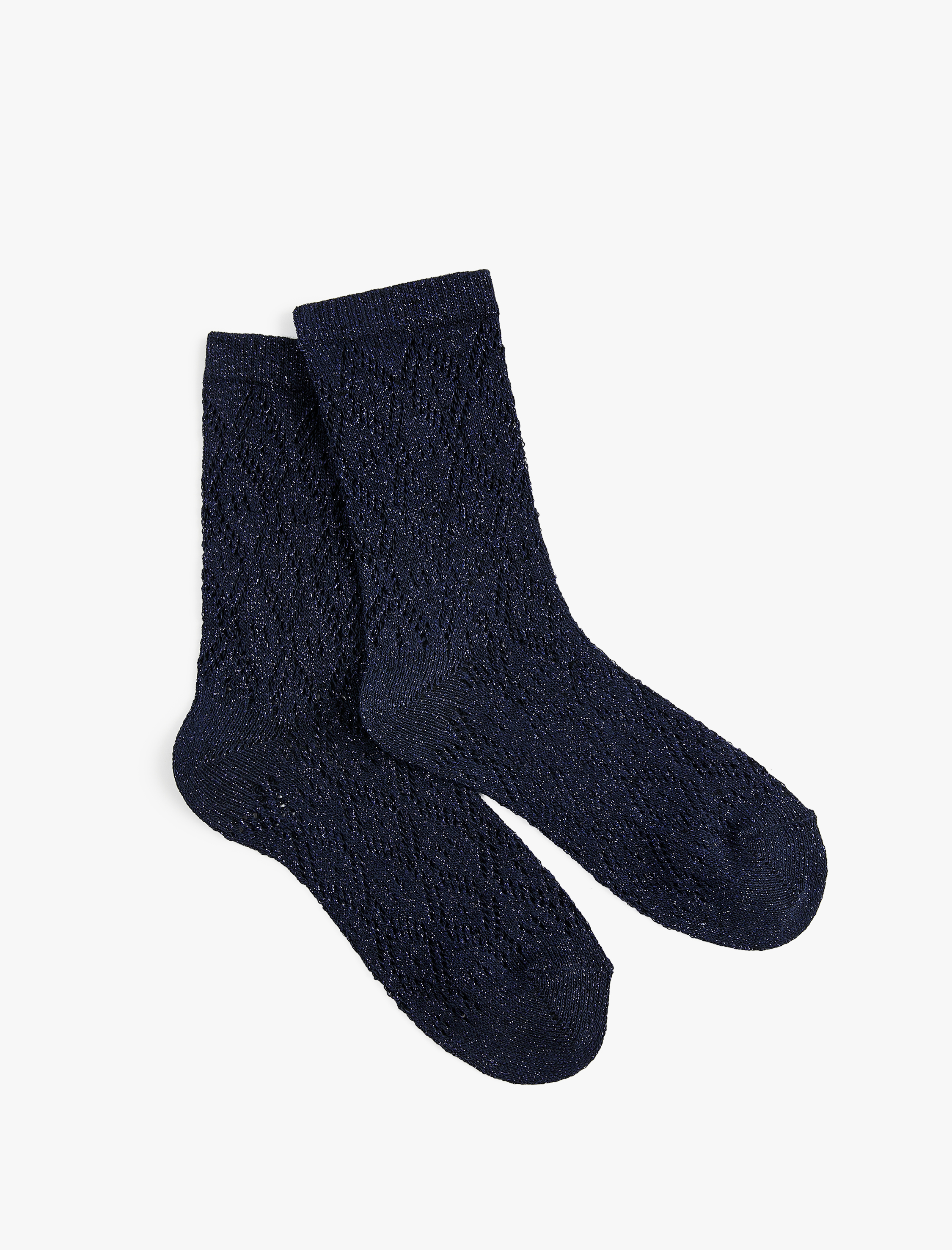 Kadın Pamuklu Metalik Detaylı Soket Çorap