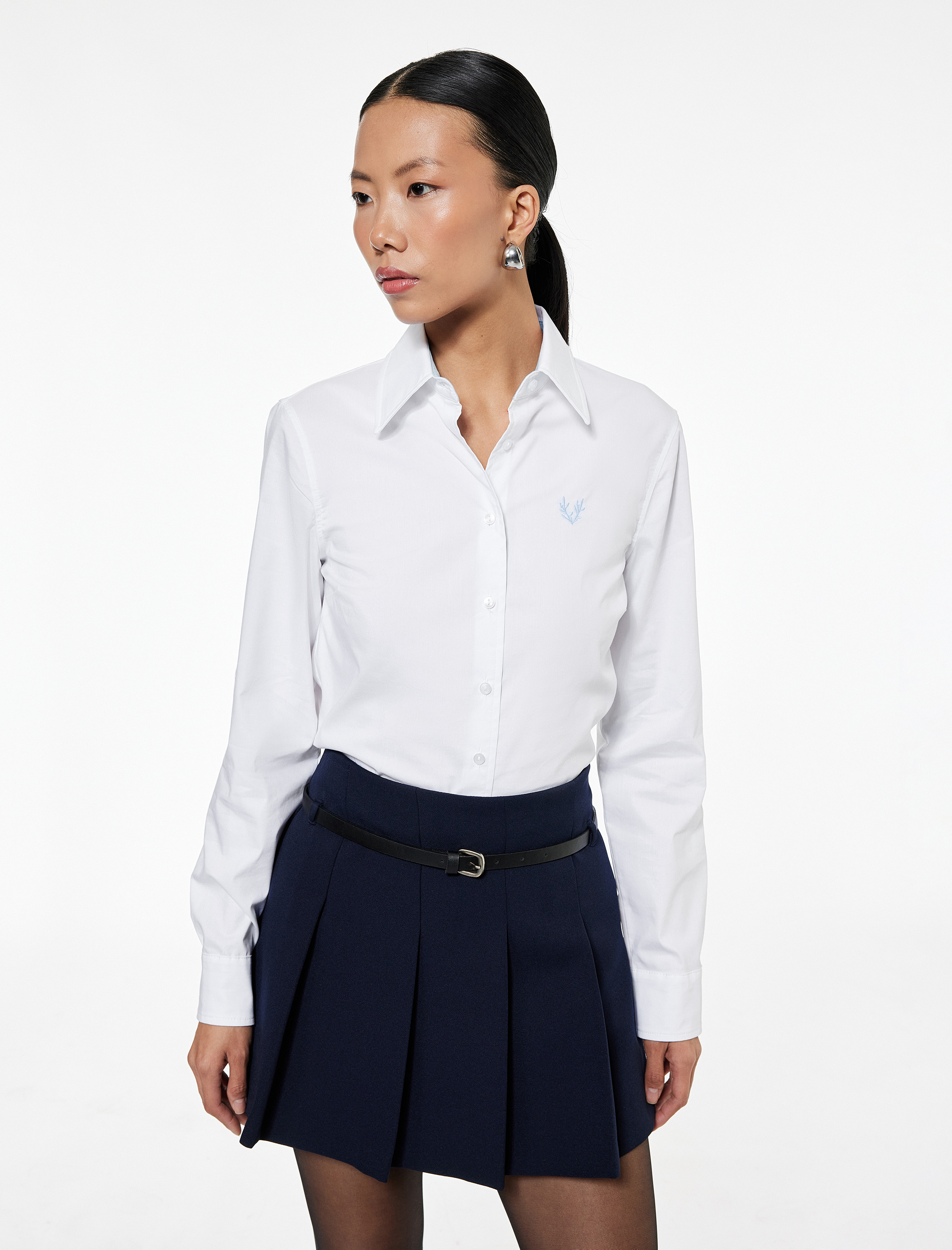 Pamuklu Slim Fit Uzun Kollu İşleme Detaylı Poplin Gömlek