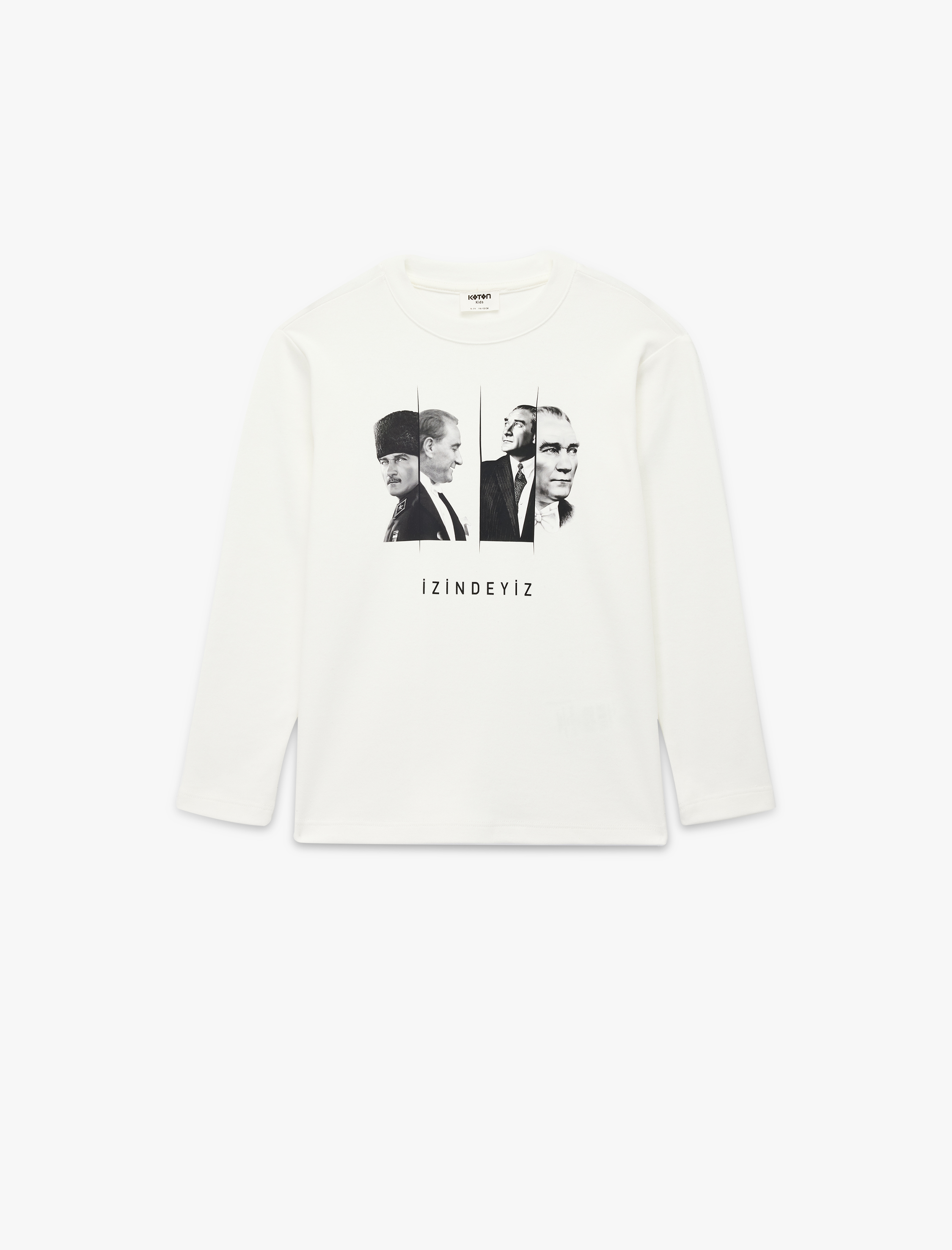 Erkek Çocuk Pamuklu Uzun Kollu Bisiklet Yaka Atatürk Baskılı Tişört