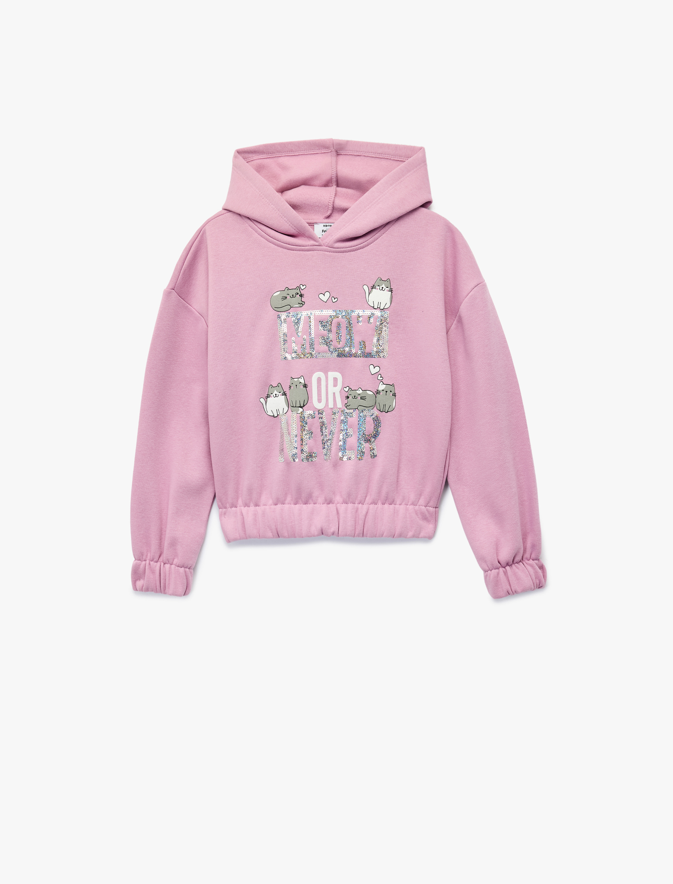 Kız Çocuk Pamuklu Uzun Kollu Kapşonlu Baskılı Sweatshirt