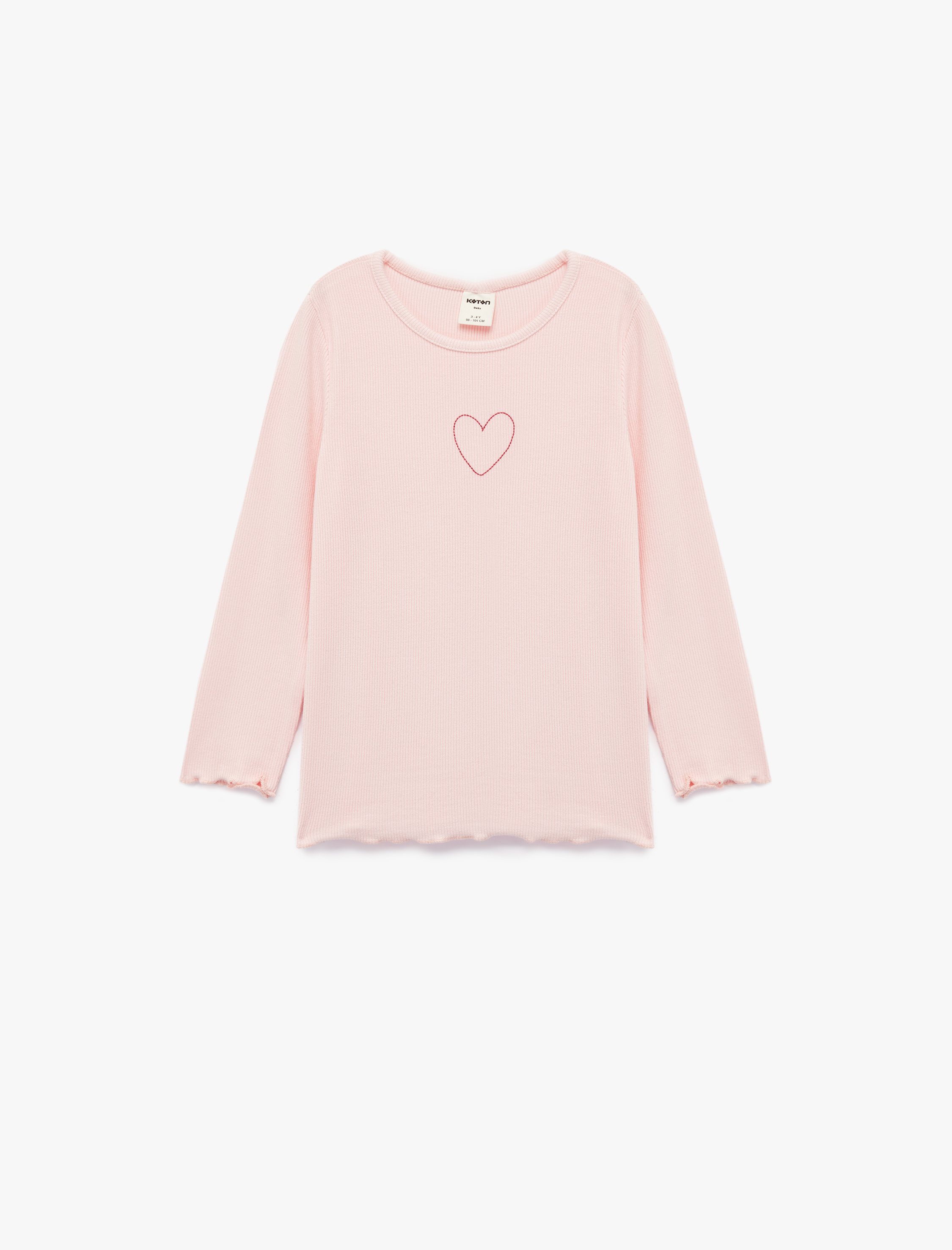 Kız Bebek Pamuklu Uzun Kollu Kaşkorse Kalp İşlemeli Bisiklet Yaka Tişört