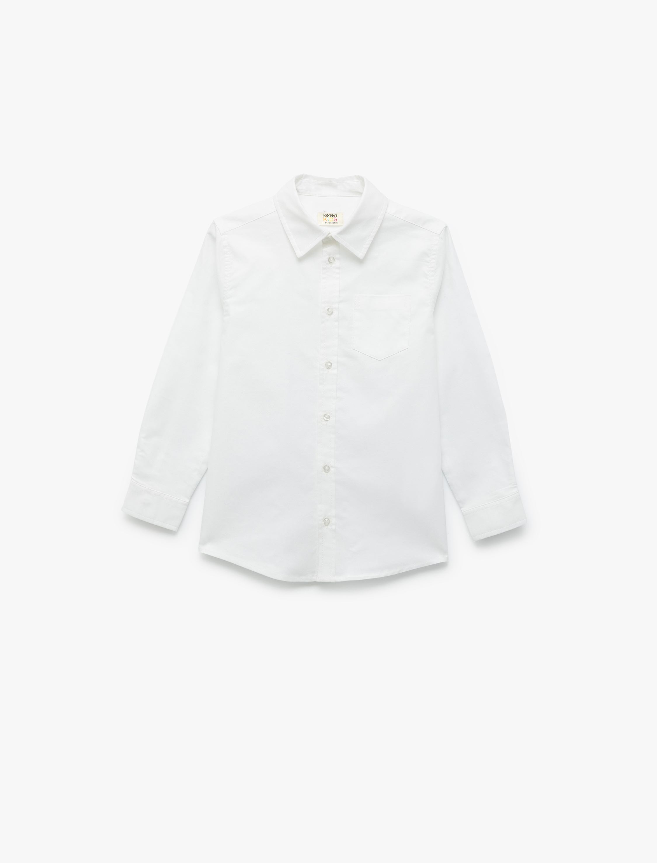 Erkek Çocuk Pamuklu Uzun Kollu Klasik Yaka Tek Cepli Basic Okul Gömleği