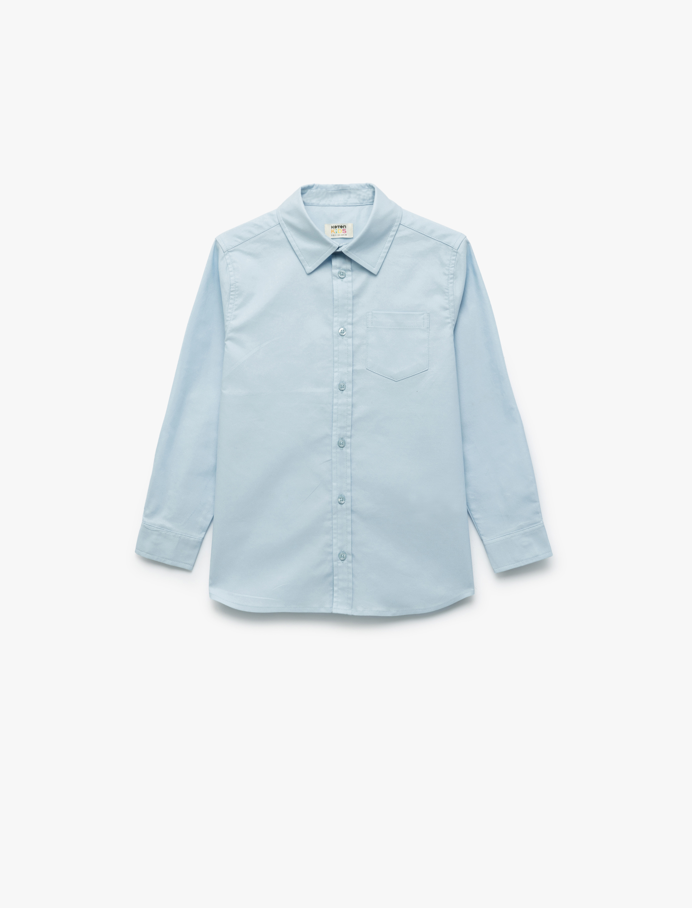 Erkek Çocuk Pamuklu Uzun Kollu Klasik Yaka Tek Cepli Basic Okul Gömleği