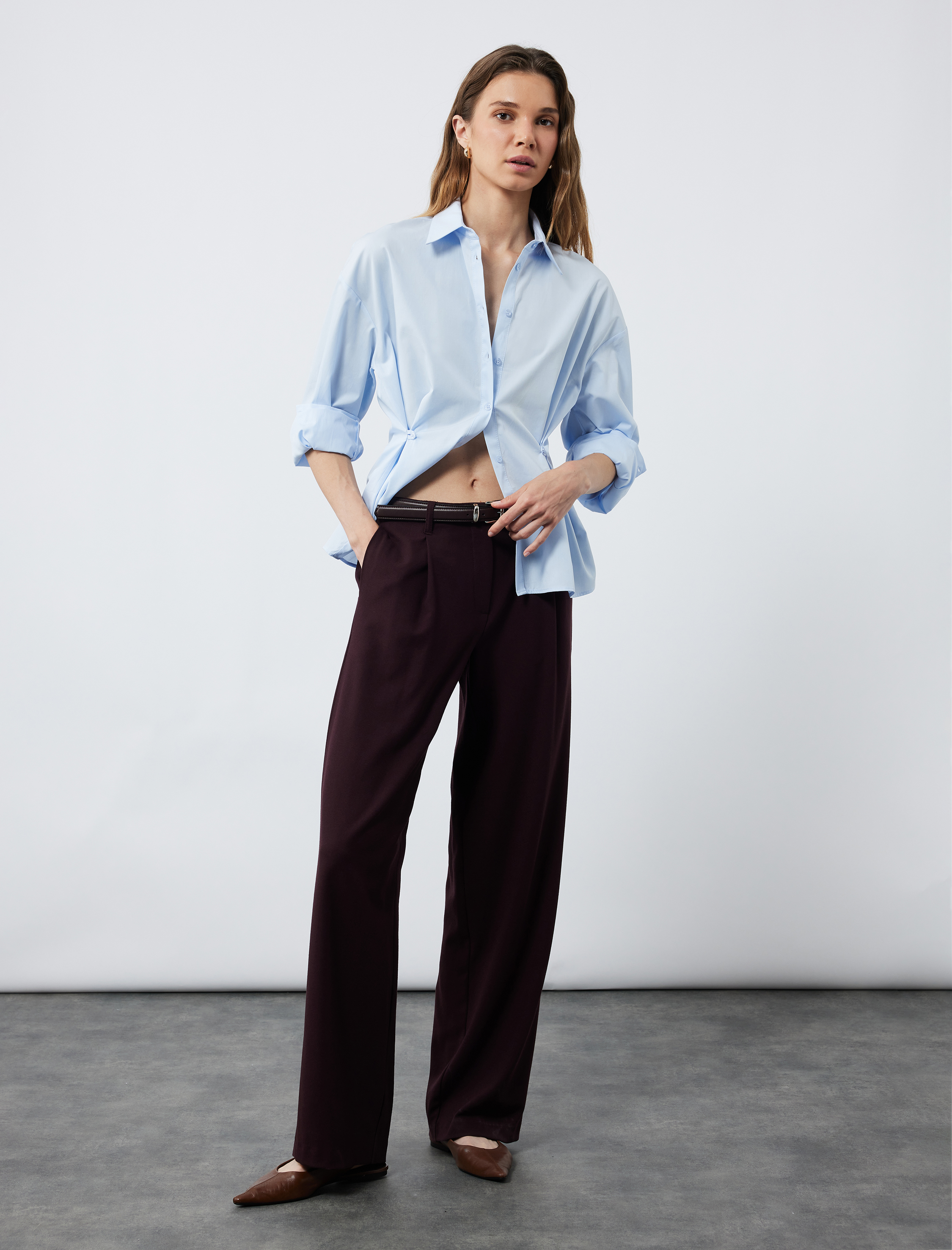 Pamuklu Uzun Kollu Pile Detaylı Düğmeli Oversize Poplin Gömlek