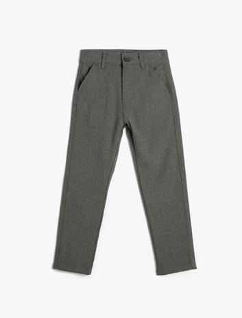 Kumaş Pantolon Slim Fit Beli Bağcıklı Dar Paça Cepli