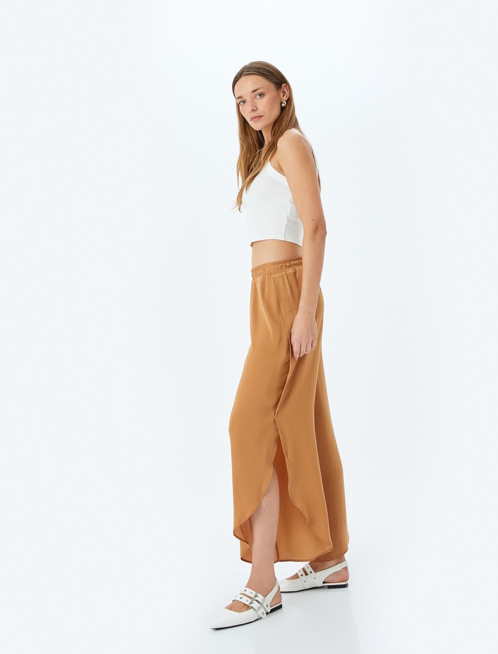 Rahat Kalıp Yanları Yırtmaçlı Asimetrik Aerobin Saten Pantolon Sepete Ekle
