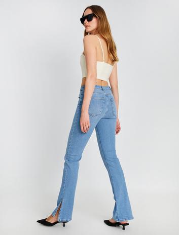 İspanyol Paça Kot Pantolon Dar Kesim Yüksek Bel