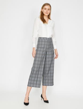 Ekose Geniş Paça Crop Pantolon Sepete Ekle