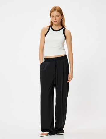 Geniş Paça Pantolon Beli Bağcıklı Viskon Karışımlı
