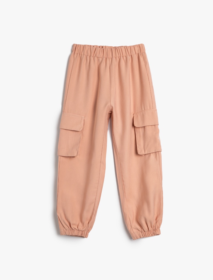 Kız Çocuk Paraşüt Pantolon Yanları Cepli Paçaları Elastik