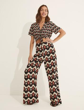 Melis Ağazat X Koton - Desenli Bol Paça Pantolon