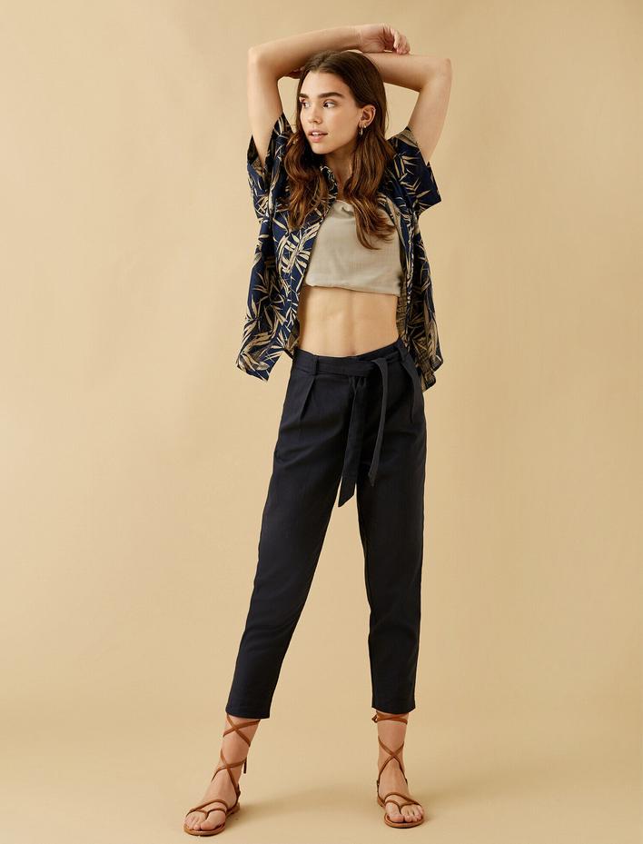 Keten Pantolon Belden Bağlamalı Sepete Ekle