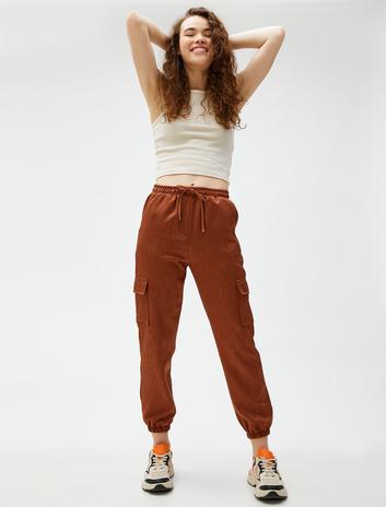Kargo Pantolon Beli Bağcıklı Cep Detaylı Paçası Lastikli