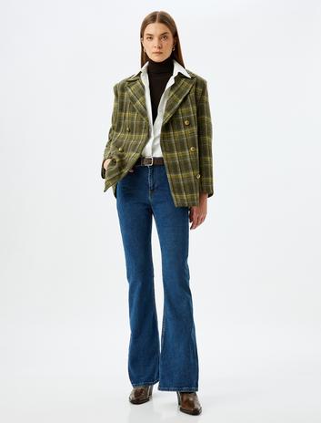 Yüksek Bel İspanyol Paça Düğmeli Slim Fit Cepli Kot Pantolon - Flare Jeans