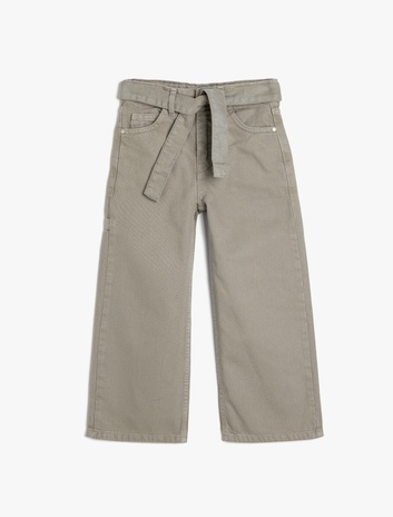 Kız Çocuk Geniş Paça Kot Pantolon Kemerli Cep Detaylı