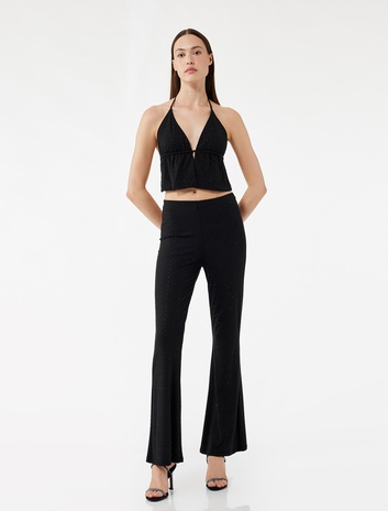 Koton X Zeynep Bastık - Viskon Karışımlı Taş Detaylı Slim Fit İspanyol Paça Pantolon Sepete Ekle