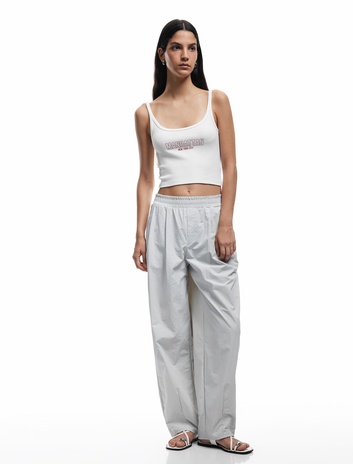 Aerobin Kumaş Beli Lastikli Bağlamalı Cepli Geniş Paça Saten Pantolon